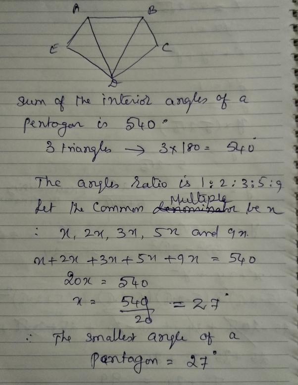 Another example the interior angles of a pentagon add up to 540°. Either way i get a wrong answer. The answer is 360° ÷ 8 = 45°. A polygon with 23 sides has a total of 3780 degrees. Multiply each of those measurements times the number of sides of the regular polygon